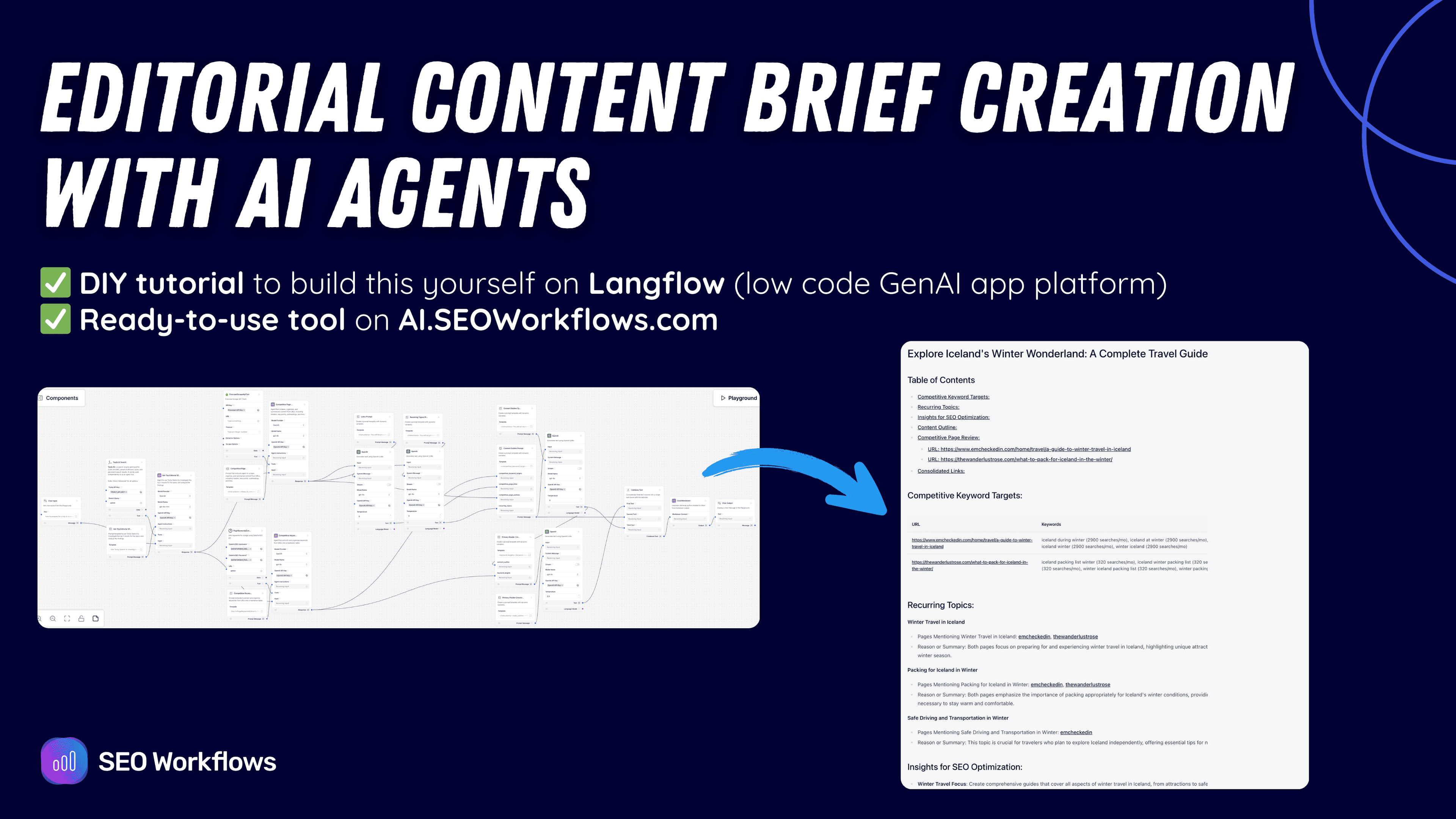 In this post, we'll guide you through building an AI-powered editorial content briefing agent that can generate robust content briefs, including target keywords, content outlines, and media ideas. This tool will not only save you time but also ensure your content is strategically planned for maximum SEO impact.