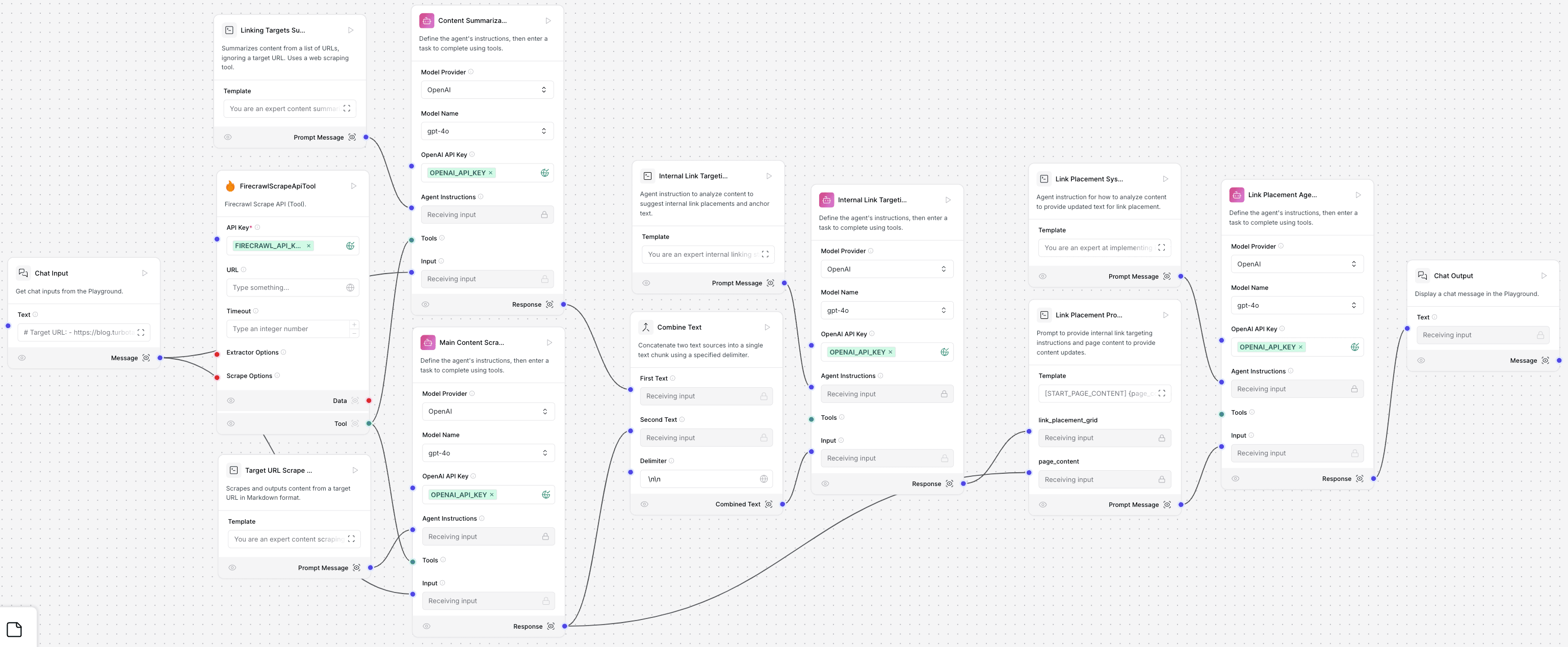 The core of this agent is a series of interconnected components that work together to analyze content and suggest relevant links. Here's a breakdown of the workflow: